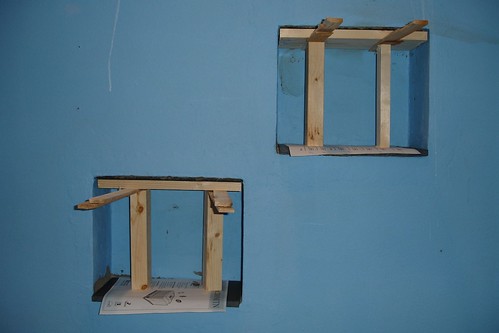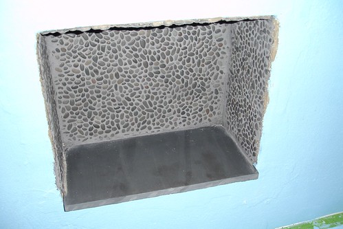 Grouting the niches wasn’t very bad, and went fairly quickly. There’s still a few spots that need to be touched up, but for most part, it’s done. The mirror niche currently has a blank spot where the mirror will go; more details on that coming soon…