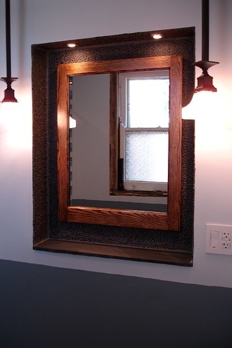 Once all of that was done, I took the finished frame into a local shop to get it fitted with the mirror. Just a couple of days later, I had a beautiful new mirror installed in the bathroom. Oh yeah, and there’s also a nice peek in there at the additional lighting that’s been installed (more on that later).