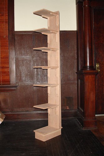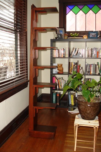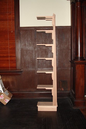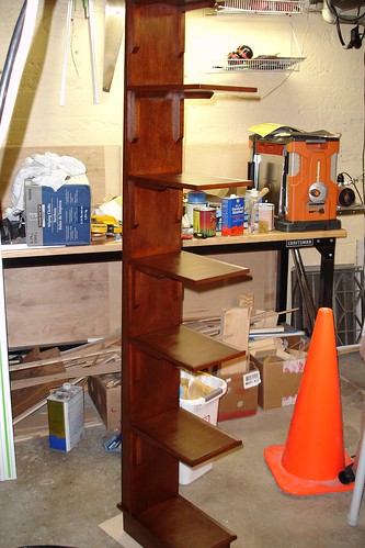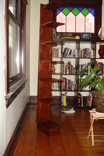 With all of the hard work and celebrations over, it was time for the shelves to assume their ultimate role of keeping stuff off the floor. Unfortunately, a lot of the joinery and the shape of the piece are lost in its home, but that was to be expected.