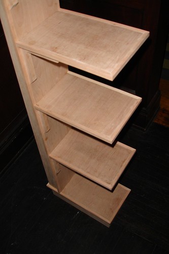 For a little extra protection (and renewability), I decided to give the finished shelves a coat of paste wax. After bringing them upstairs to get a good view of them in natural light, I started to have second thoughts about giving them away as a gift.